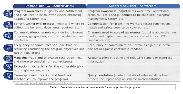 Governments around the world have announced many policy changes and improvements in their existing social protection programs to expand their reach to the last mile. However, communication about this expanded outreach is often not updated adequately. This issue is particularly important to address now that governments are establishing or expanding cash transfers as a social protection response to COVID-19, with an increased emphasis on digitization to deliver safe, secure and convenient payments. Administering these programs safely and inclusively can require special procedures and requirements, which increases the need for clear communication.