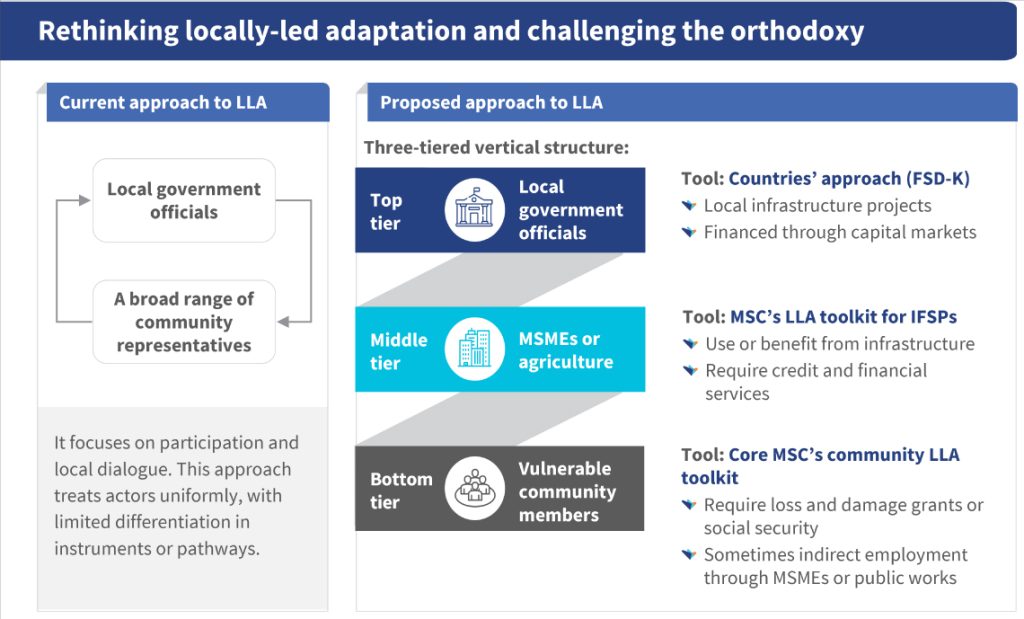 This is where locally-led adaptation measures become crucial. Part one of this series showed how community-level LLA tools help households map hazards and cocreate adaptation options. This second part shifts the focus to the middle tier of MSMEs and their lenders. MSMEs are often banked and have cash flows with repayment capacity, which allow lenders to underwrite adaptation investments. They anchor value chains and provide crucial market services, yet remain climate-exposed.