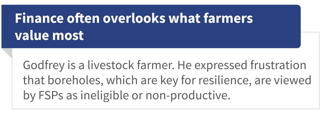 The pilot highlights the urgent need for inclusive financial service providers to adapt their products and processes to meet the resilience needs of farmers.