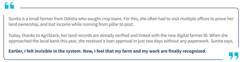 Tackling these issues requires stronger systems that begin with better information on farmers and their activities. Farmers often struggle to prove their identity as cultivators, the land they own, or the crops they grow, because verified and trustworthy records are missing. Databases are static, fragmented, and vary across states, which leaves farmers dependent on repeated manual checks. Without reliable real-time data, every new scheme or service requires fresh verification, making access slow and costly. This not only delays support but also increases the expense for both government and private providers. As the country grapples with climate change, population growth, and resource scarcity, digital technologies could be a transformative force.
