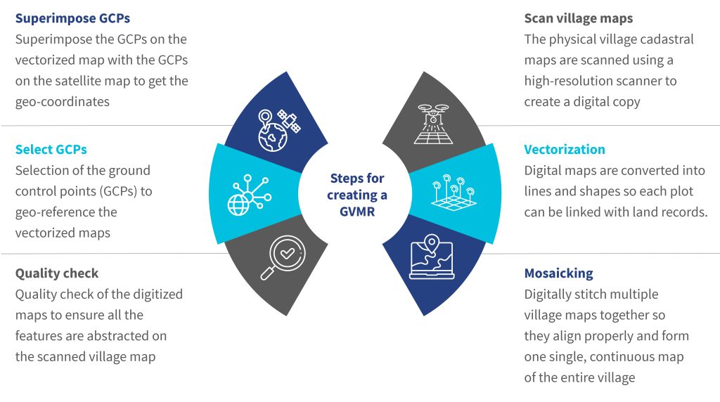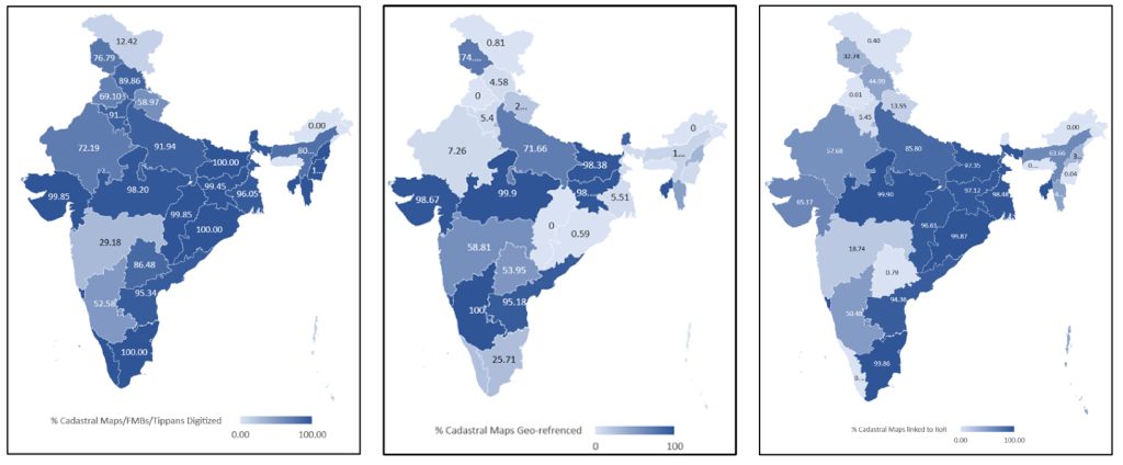 Several states have also used drone-based mapping to capture fine-scale ground details where satellite imagery is insufficient. At the same time, a few states also conduct a special survey and settlement process to accurately depict on-ground situations and geo-reference plots. As of now, more than a dozen states have completed the digitization of all village cadastral maps and are at various stages of geo-referencing.